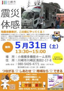 5月31日に予定していた地震体験車は、残念ながら雨のため順延となりました。お問い合わせも多く、大勢の方が楽しみにされていたので、10月に再度企画することになりました!